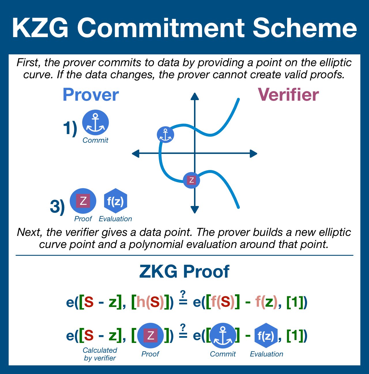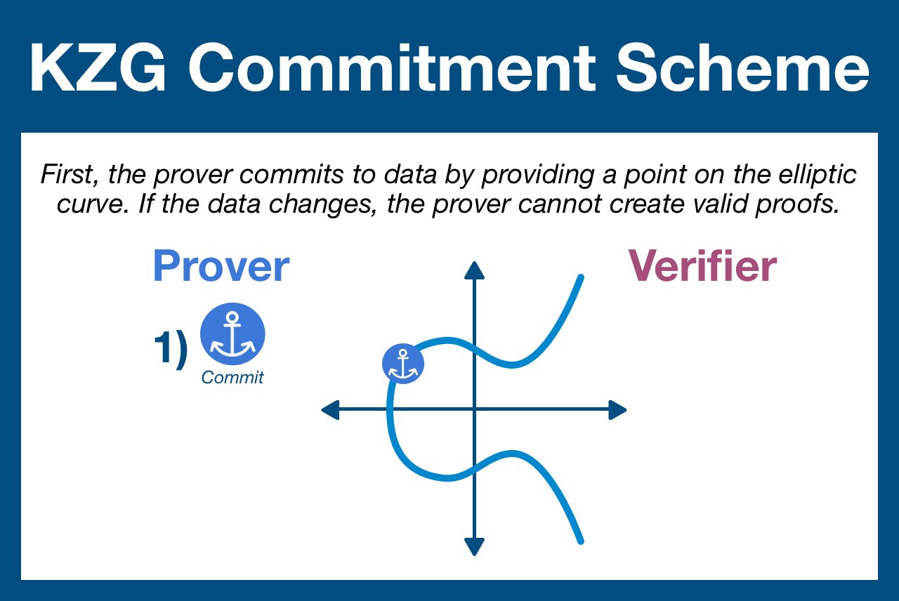 A KZG polynomial commit can be "opened" with any data point without revealing the entire dataset.