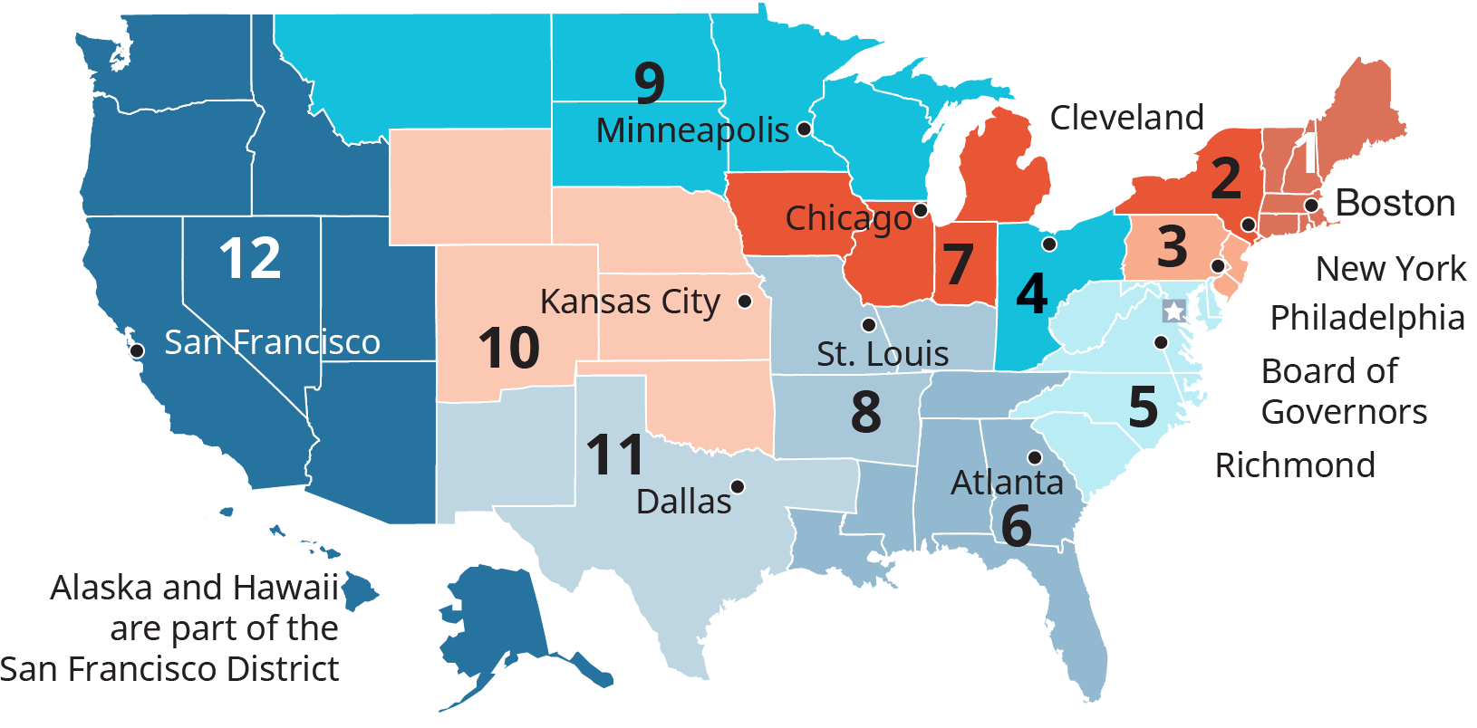 The Federal Reserve Act of 1913 established the Federal Reserve System (The Fed) as the country’s central bank. The Fed is designed as an independent, decentralized (their word) bank to better ensure that monetary policy would be based input from across the country.