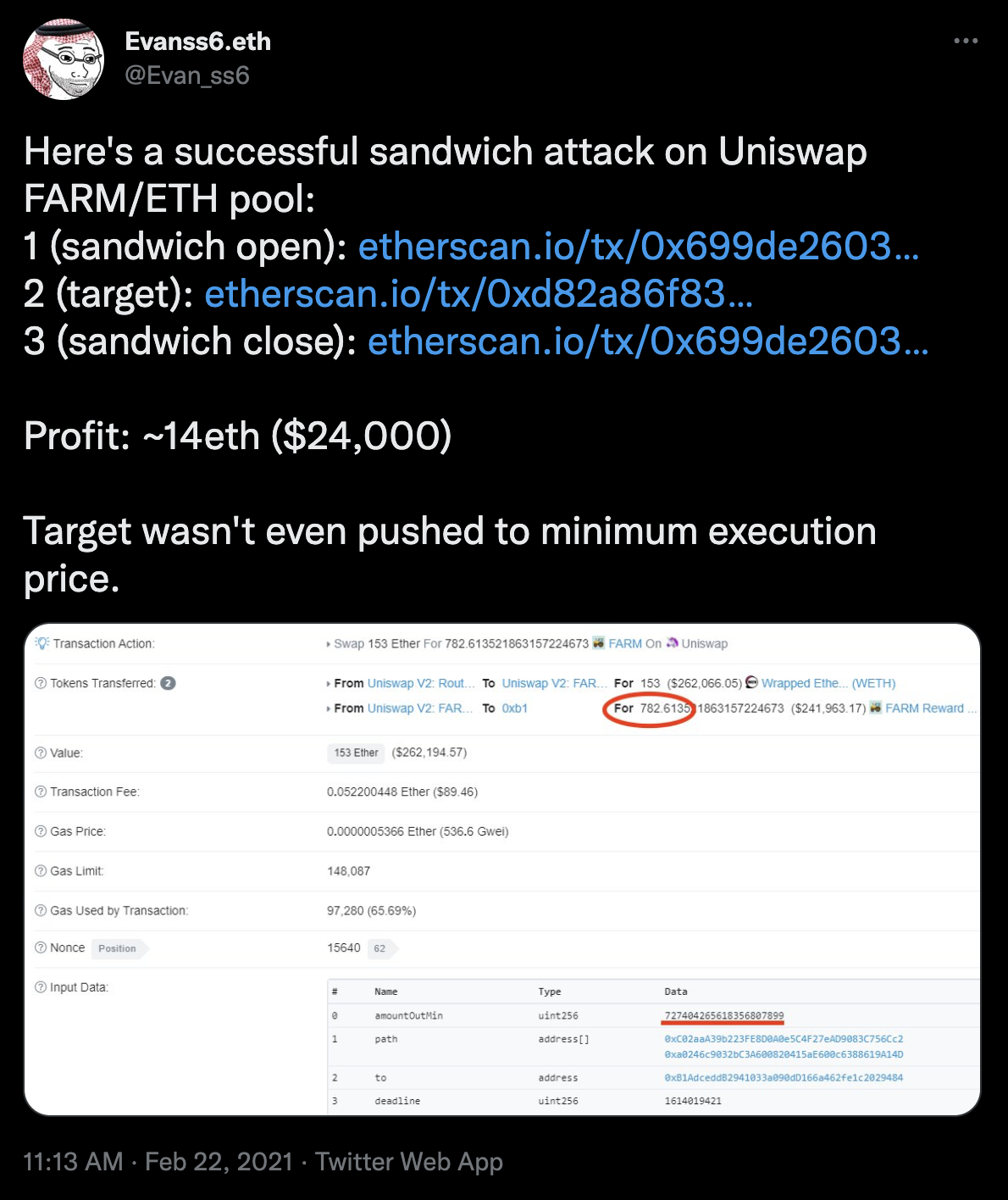 Eg: 2 DEXes with USDC:ETH pools, both have an exchange rate of 2000:1.