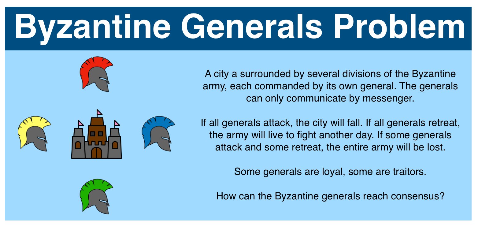 The Byzantine Generals Problem is a thought experiment: imagine an ancient city at war with Byzantium.