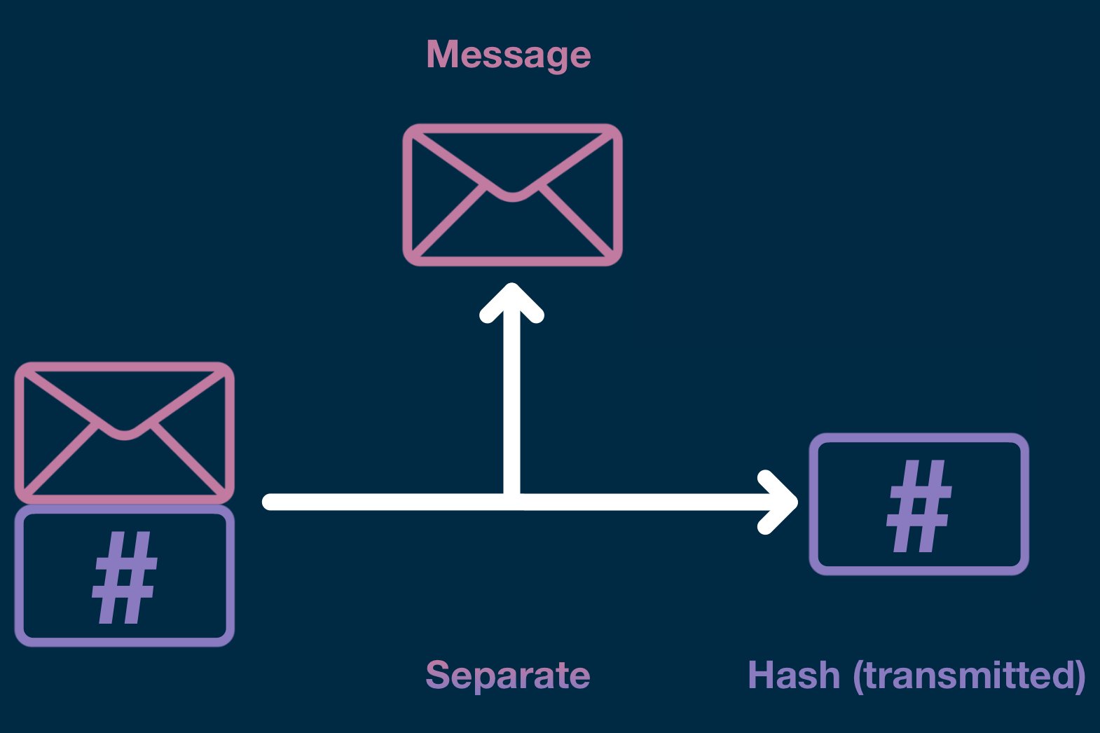 Finally, the verifier will feed this computed hash and the (decrypted) transmitted hash into the verification function.