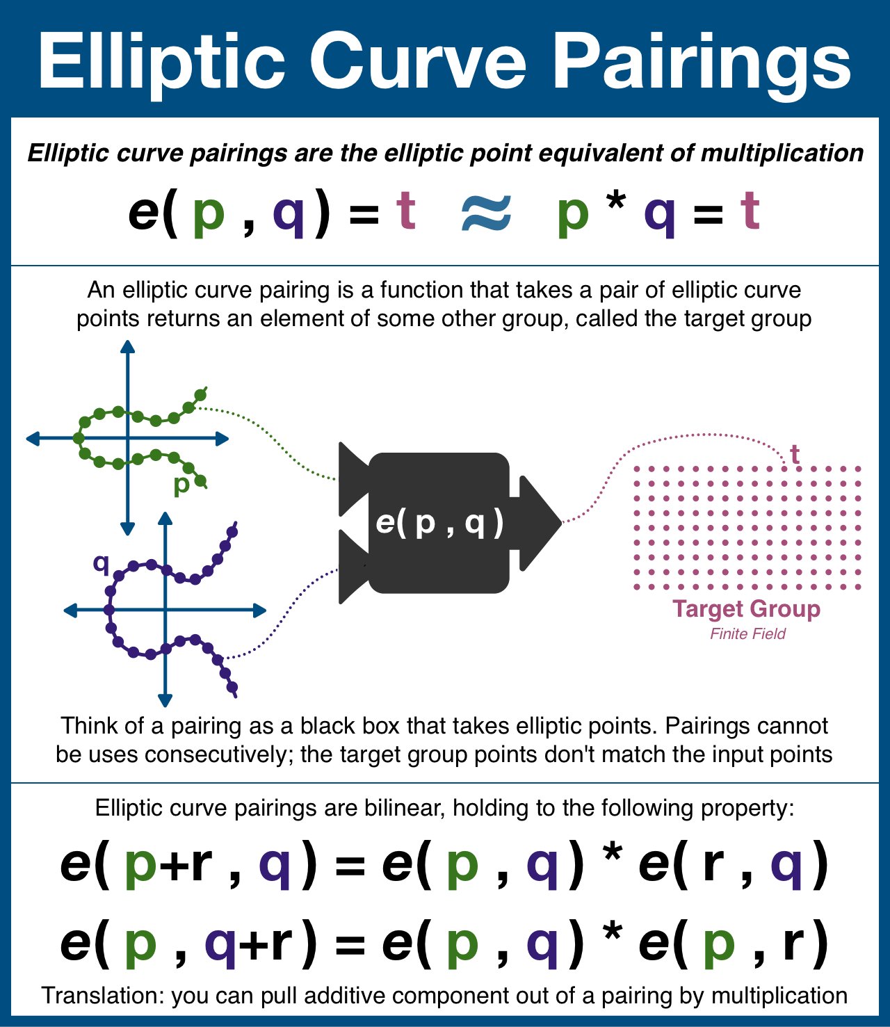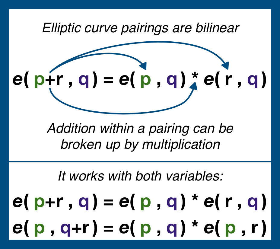 We are simply going to use them like multiplication: combine two points to make a third. We will use the pairing two times with different values and compare the results, looking for equality.