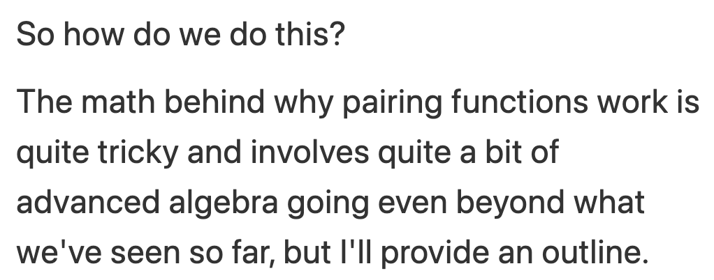 And so, if we modify the decision Diffie-Hellman problem to a bilinear Decision Diffie-Hellman problem, pairings hold all the same properties and assumptions required to implement Diffie-Hellman and most other public cryptography schemes.