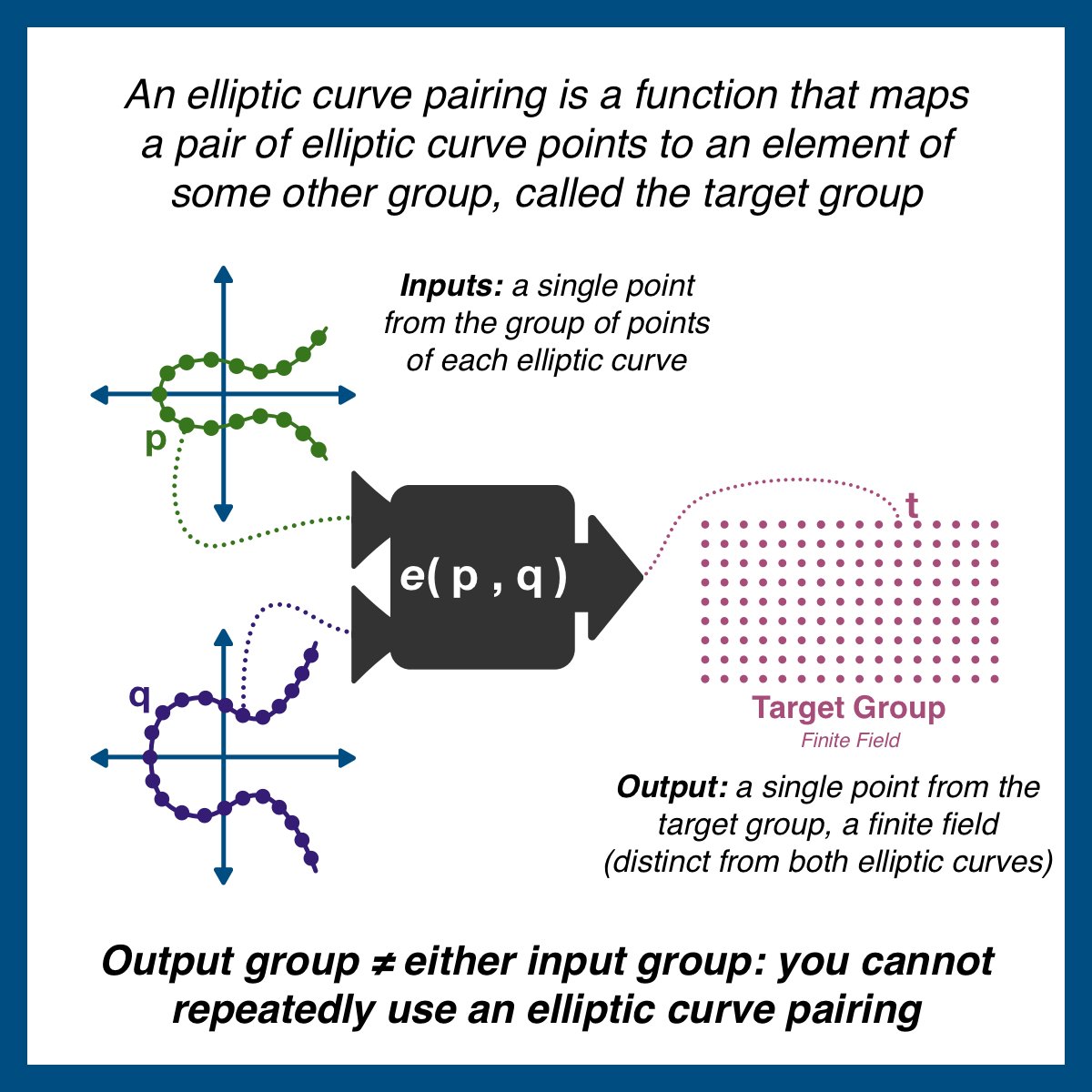 An elliptic curve pairing is a function that takes in two points on an elliptic curve and outputs a point in a finite field (think finite field = a predetermined set of points).