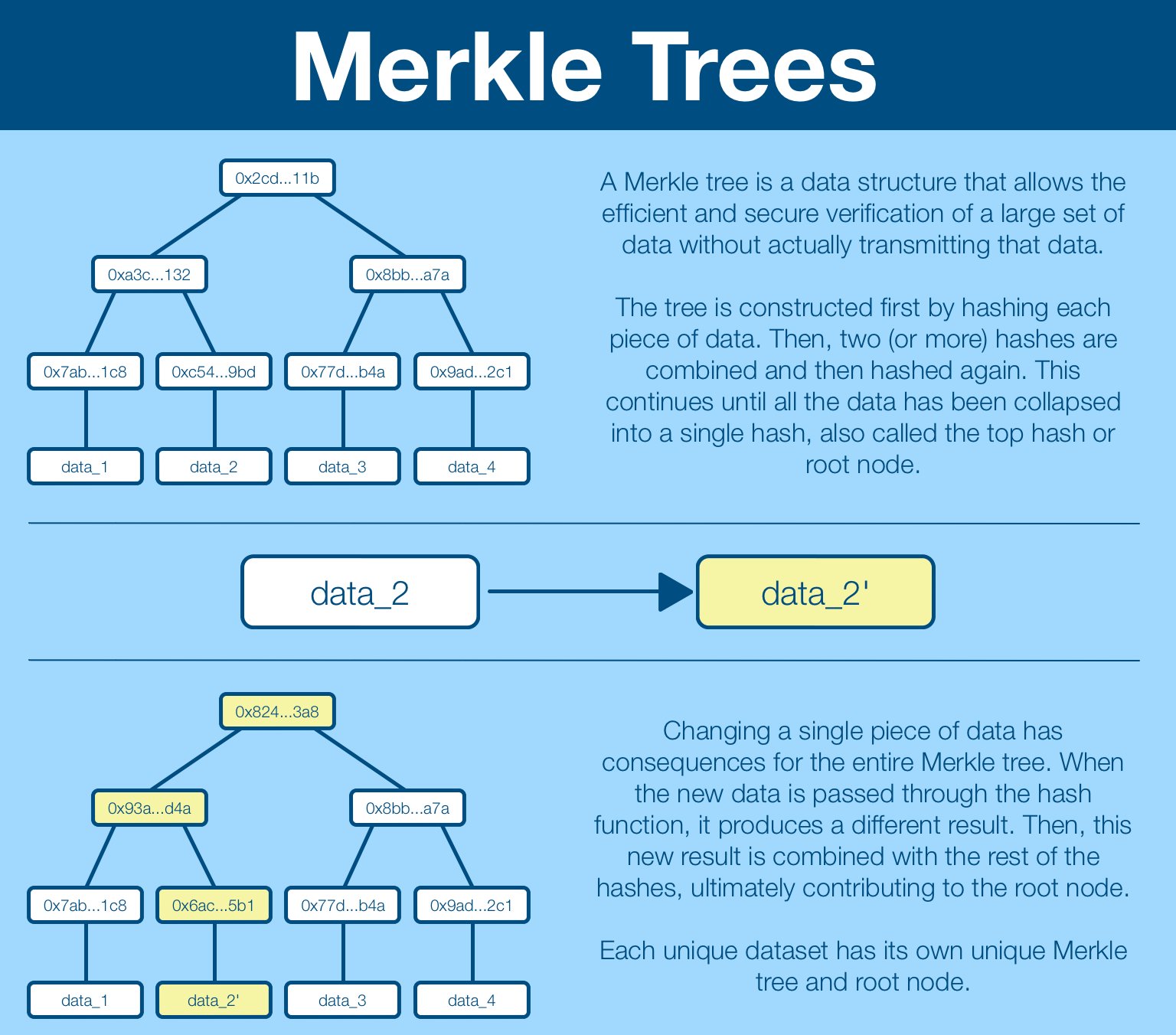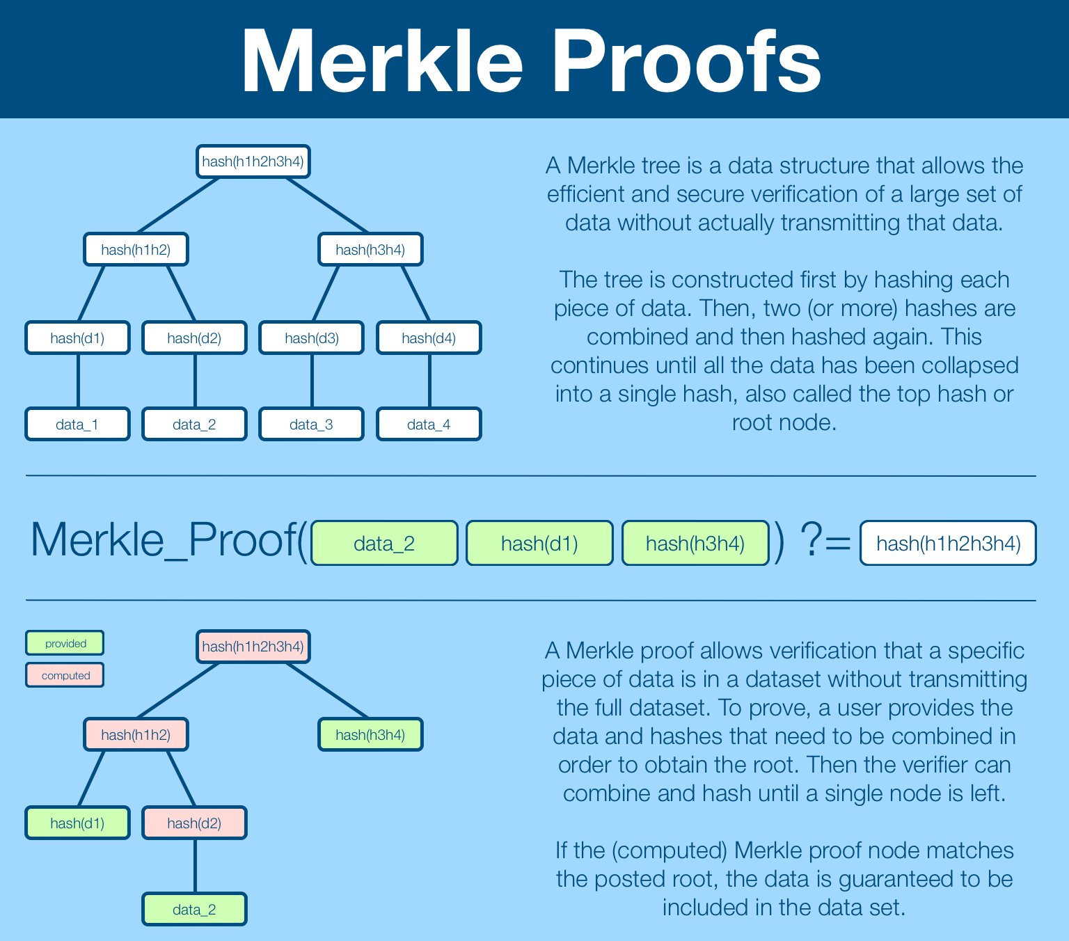 - Merkle Proofs can be used to efficiently verify data exists in a dataset.