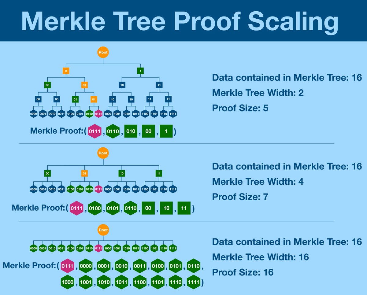 As previously mentioned, today Ethereum uses Merkle trees with a width of 16.
