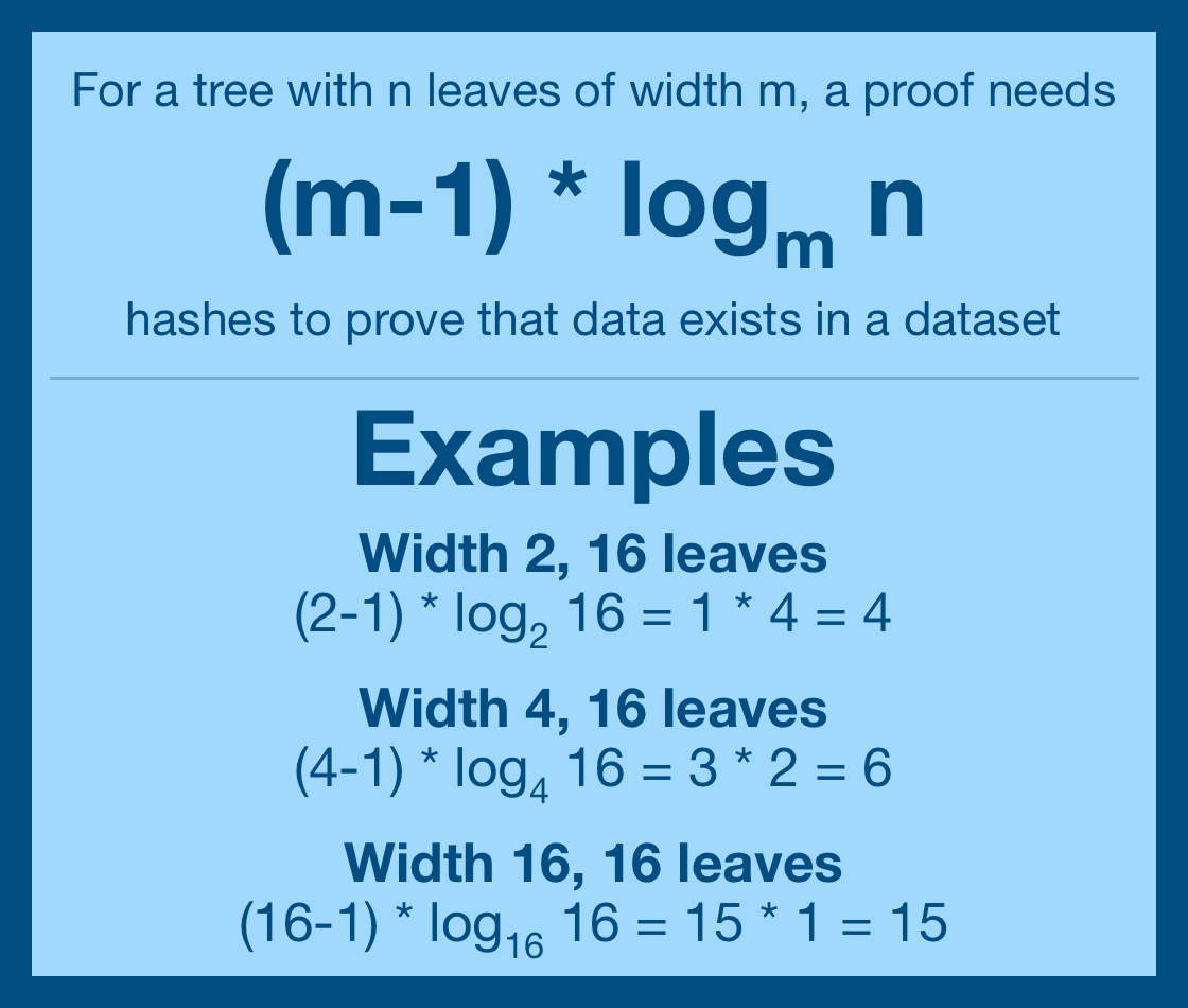 Here's the formula for calculating how many components a Merkle proof will need.