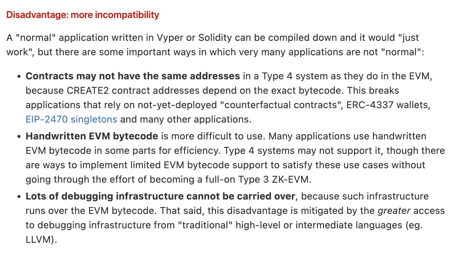 First and foremost, type 4 ZK-EVMs requires the development and maintenance of a whole new piece of software: the compiler.