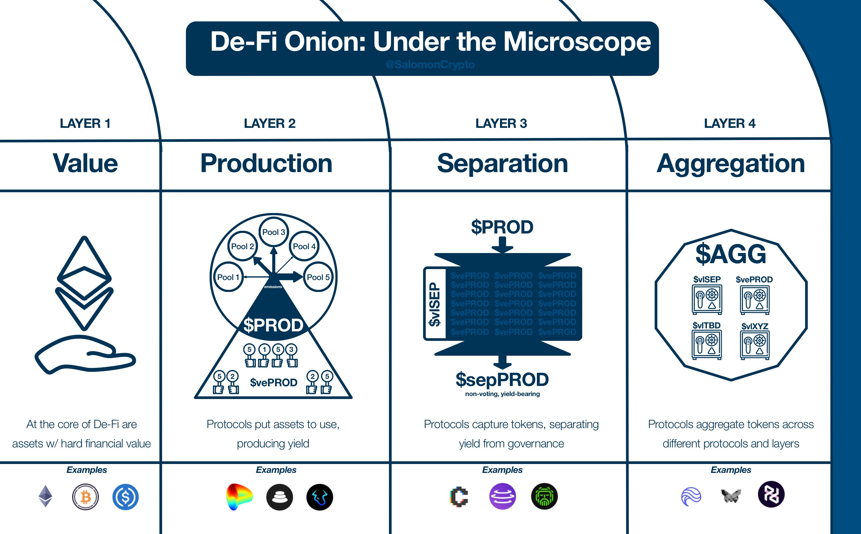 The De-Fi Onion is a simple metaphor that helps illustrate the different layers created by the ve-token system.